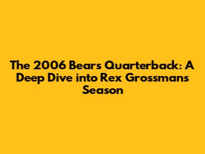 Alright guys, let's take a trip down memory lane and talk about the 2006 Chicago Bears quarterback situation. It’s a topic that still sparks a bit of debate and nostalgia among Bears fans, and for good reason. The 2006 season was a rollercoaster, and at the heart of it all was quarterback Rex Grossman. This was the year the Bears made it all the way to the Super Bowl, and Grossman was the guy under center guiding the offense. It wasn't always pretty, but he led them to wins, and that's what matters in the end, right? We're going to break down his performance, the expectations surrounding him, and what made that 2006 season so memorable for Chicago. So buckle up, because we're about to dissect one of the most talked-about Bears seasons in recent history, focusing on the man who had the monumental task of leading the charge.