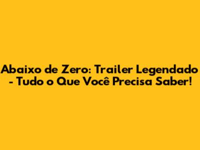 Abaixo De Zero: Trailer Legendado - O Que Você Precisa Saber!