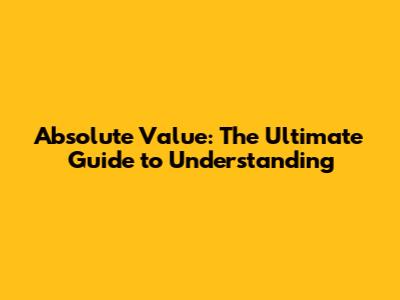 Absolute Value: The Ultimate Guide To Understanding