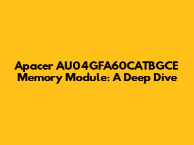 Hey guys, let's talk about a specific piece of tech that might be flying under your radar but is crucial for many systems: the Apacer AU04GFA60CATBGCE memory module. If you're tinkering with computers, upgrading an old rig, or even building a new one, understanding the components is key. This particular module, often seen in various configurations, is a testament to the compact and efficient memory solutions that Apacer offers. We're going to break down what makes this module tick, why it might be the right choice for you, and what you should look out for. Memory, or RAM (Random Access Memory), is essentially the short-term workspace for your computer. The faster and more of it you have, the smoother your applications will run, and the more tasks you can juggle simultaneously without your system slowing to a crawl. Apacer, a company with a solid reputation in storage and memory solutions, brings us this AU04GFA60CATBGCE model, which is designed to offer a blend of performance and reliability. Understanding the nomenclature itself can be a bit of a puzzle, but breaking it down helps. The 'AU' often indicates a certain series or type of memory, '04G' clearly points to 4 Gigabytes of capacity, 'FA' might refer to the form factor or specific interface, '60' could relate to timings or speed, and 'CATBGCE' likely contains details about the module's specific characteristics, like its voltage, rank, and density. While the exact specs can vary slightly depending on the precise revision, the core function remains the same: to provide fast, accessible data storage for your processor. We'll get into the nitty-gritty of why these details matter, especially when you're trying to ensure compatibility with your motherboard and achieve optimal performance. So, whether you're a seasoned builder or just curious about what's inside your PC, stick around as we unpack the Apacer AU04GFA60CATBGCE.
