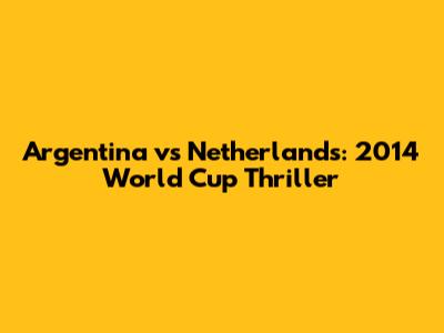 Argentina Vs Netherlands: 2014 World Cup Thriller