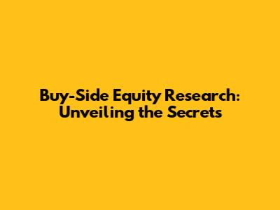 Hey guys! Ever wondered about the world of buy-side equity research? It's a super fascinating area within the financial markets, and it's where a lot of the big decisions are made. Think about it: massive investment firms, hedge funds, and mutual funds are constantly trying to figure out which stocks to buy, hold, or sell. That's where buy-side equity research comes in – it's the brains behind the operation! Basically, it's all about analyzing companies, understanding their financials, and predicting their future performance to make informed investment choices. Sounds interesting, right? Let's dive in and break down what exactly buy-side equity research is all about, and why it's such a crucial part of the investment game.