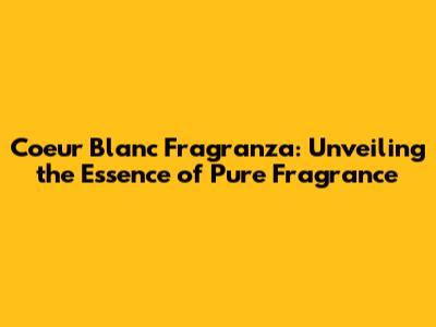 Coeur Blanc Fragranza: The Ultimate Guide To The Perfect Scent