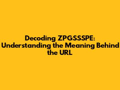 Decoding ZPGSSSPE: Understanding The Meaning Behind The URL