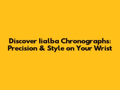 Discover Iialba Chronographs: Precision & Style On Your Wrist