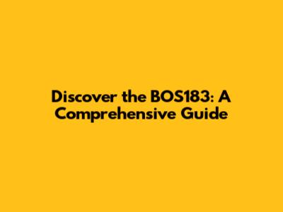 Discover The BOS183: A Comprehensive Guide