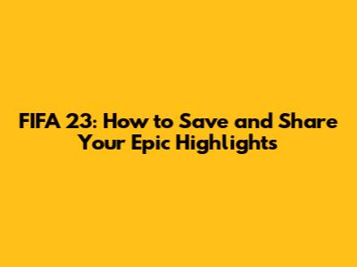 FIFA 23: How To Save And Share Your Epic Highlights