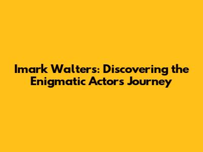 Imark Walters: Discovering The Enigmatic Actor's Journey