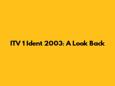 ITV 1 Ident 2003: A Look Back