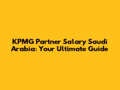 KPMG Partner Salaries In Saudi Arabia: A Detailed Guide