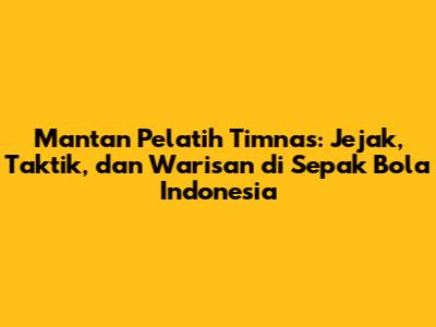 Mantan Pelatih Timnas: Jejak, Taktik, Dan Warisan Di Sepak Bola Indonesia