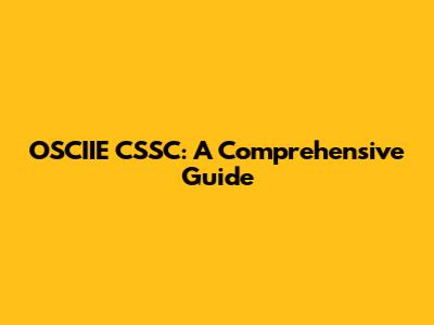 OSCIIE CSSC: A Comprehensive Guide