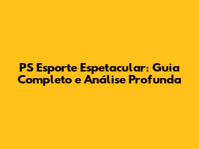PS Esporte Espetacular: Guia Completo E Análise Profunda