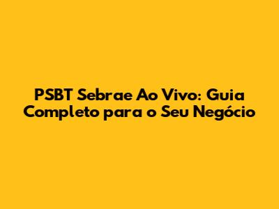 PSBT Sebrae Ao Vivo: Guia Completo Para O Seu Negócio