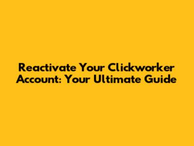 Reactivate Your Clickworker Account: Your Ultimate Guide