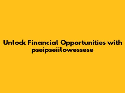 Unlock Financial Opportunities With Pseipseiilowessese