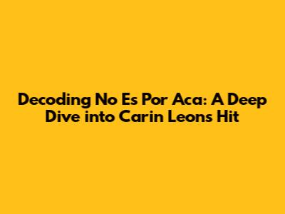 Unveiling The Lyrics: Exploring Carin Leon's 'No Es Por Aca'