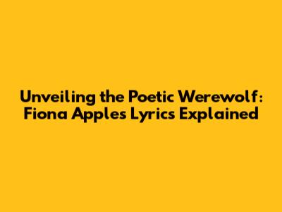 Unveiling The Poetic Werewolf: Fiona Apple's Lyrics Explained