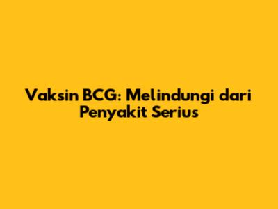 Vaksin BCG: Melindungi Dari Penyakit Serius